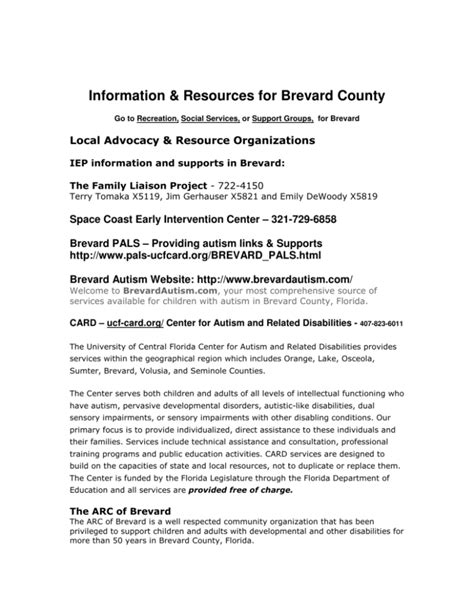 What Support Resources Exist in Brevard County?