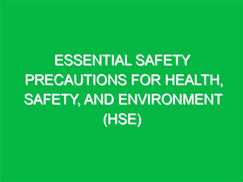 What Safety and Health Precautions are Essential?