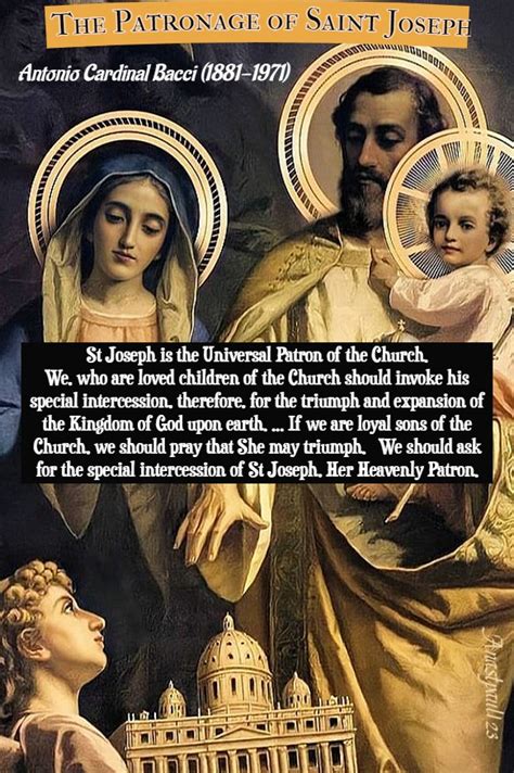- The Universal Church: Proclaimed by Pope Pius IX in 1870, acknowledging his protective role over the Holy Family as extending to the Church itself.