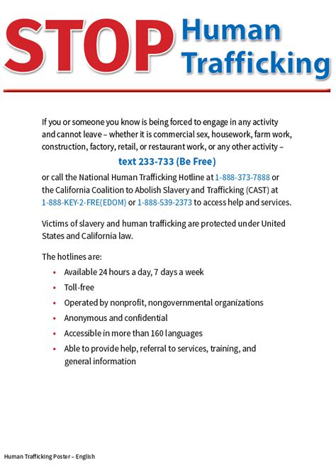 Key red flags: Unexplained hotel key cards, tattooed “branding” (barcodes, names), scripted communication, lack of personal documents, and constant supervision. Report suspicions to the Lassen County Sheriff (530-257-6121) or National Trafficking Hotline (888-373-7888).